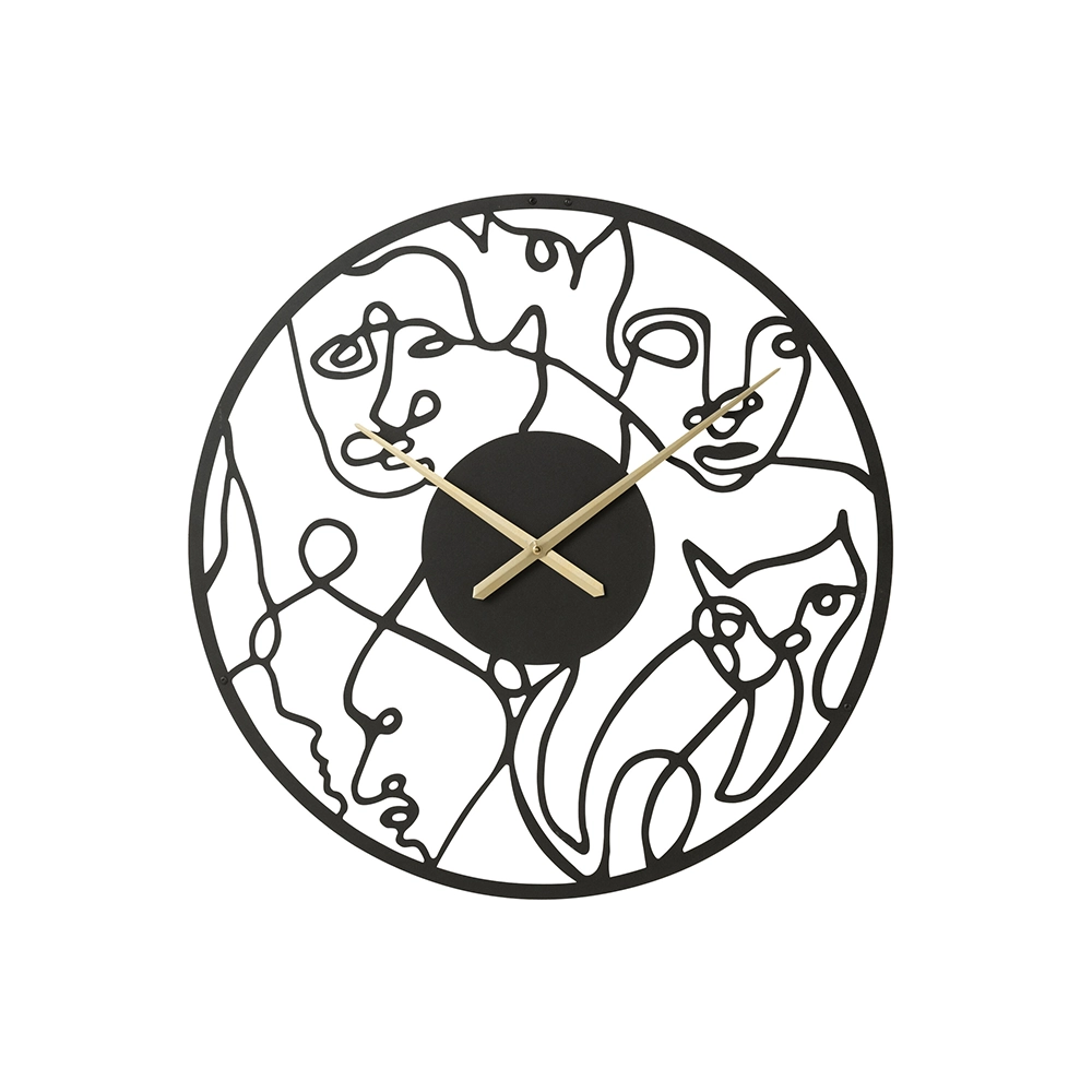أضف لمسة فنية إلى جدرانك مع ساعة الوجوه، حيث يلتقي التصميم بالتفاصيل التعبيرية. تتميز بفن الخطوط التجريدية، عقارب ذهبية، وإطار أسود أنيق، ما يضفي طابعاً إبداعياً ومميزاً على أي مساحة.