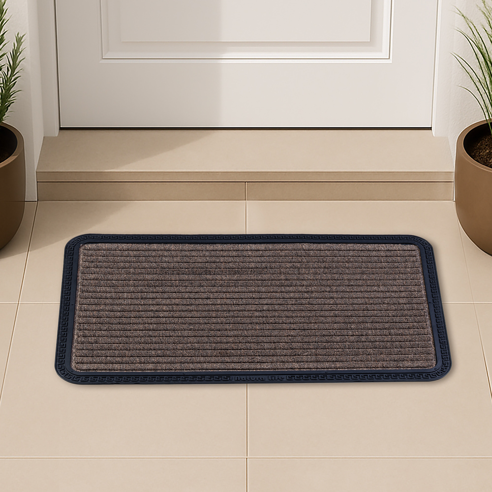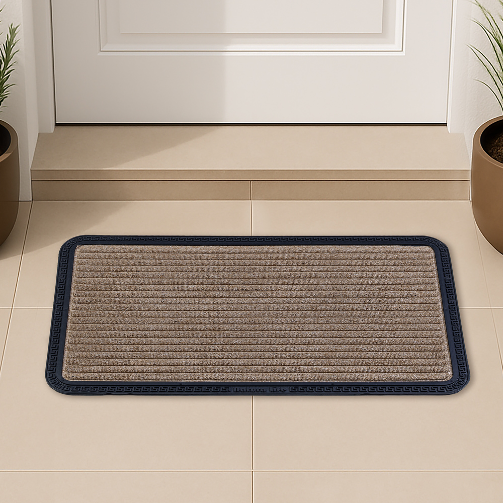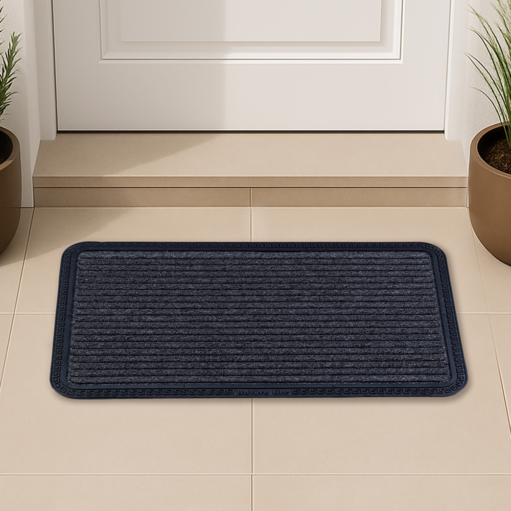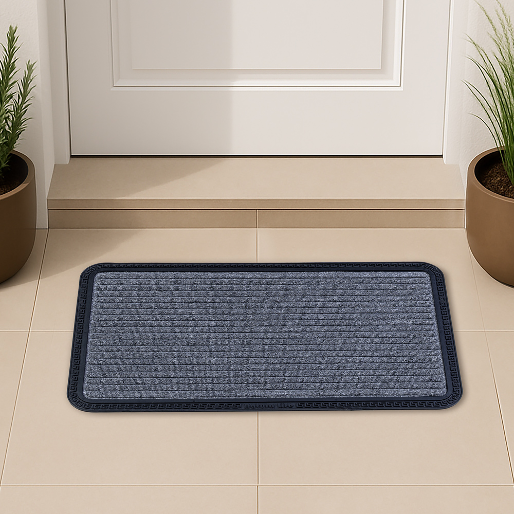 جمّل مدخل منزلك مع السجادة المخططة. مصنوعة من مطاط معاد تدويره، تساعد على حبس الأوساخ والغبار، مع متانة عالية وسهولة في التنظيف. يضفي التصميم لمسة من الأناقة والطابع المميز على مدخل منزلك.