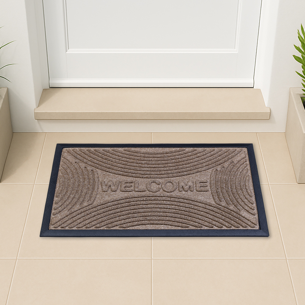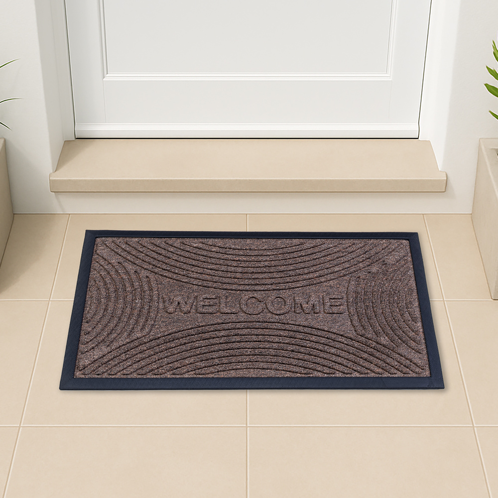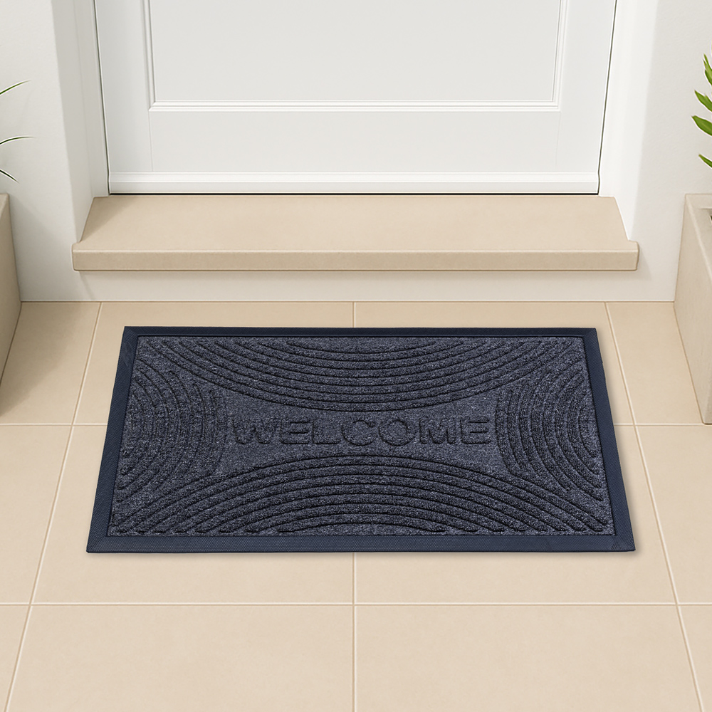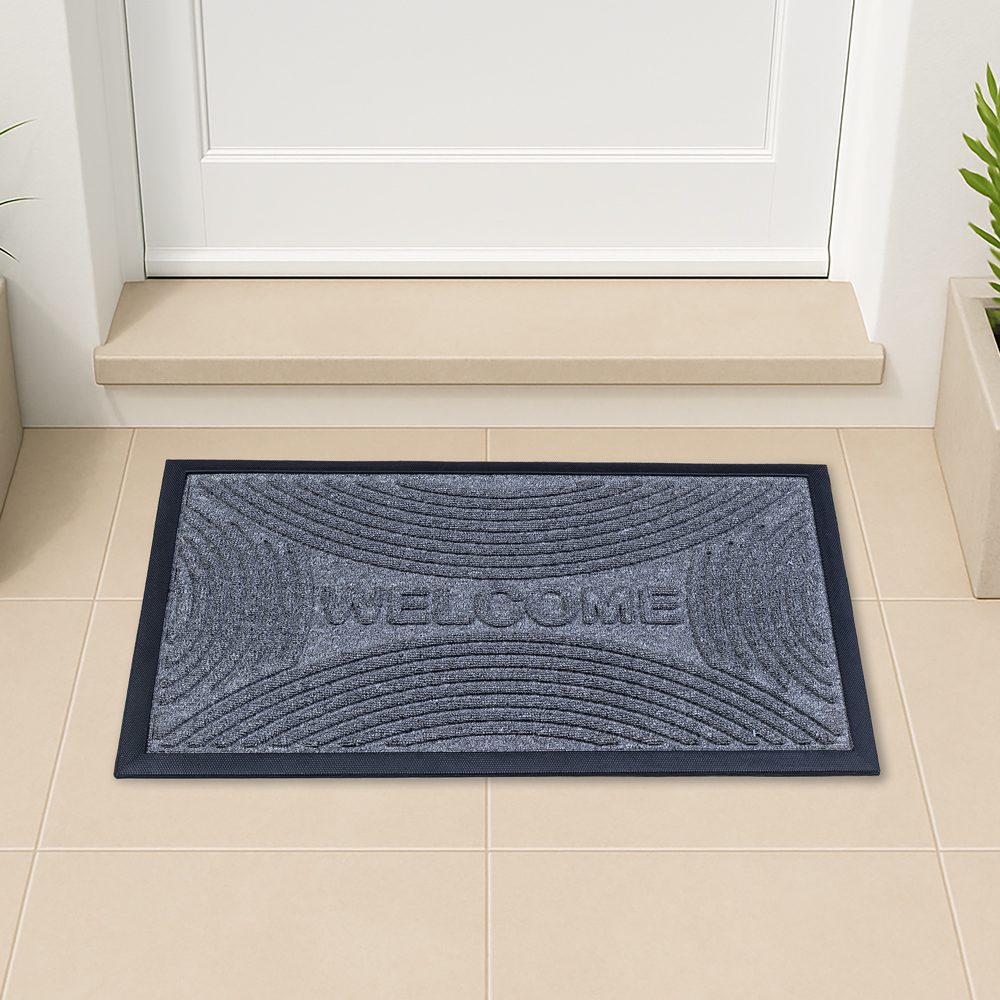 جمّل مدخل منزلك مع سجادة ويلكوم. مصنوعة من مطاط معاد تدويره، تساعد على حبس الأوساخ والغبار، مع متانة عالية وسهولة في التنظيف. يضفي التصميم لمسة من الأناقة والطابع المميز على مدخل منزلك.