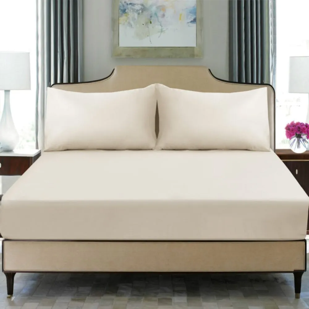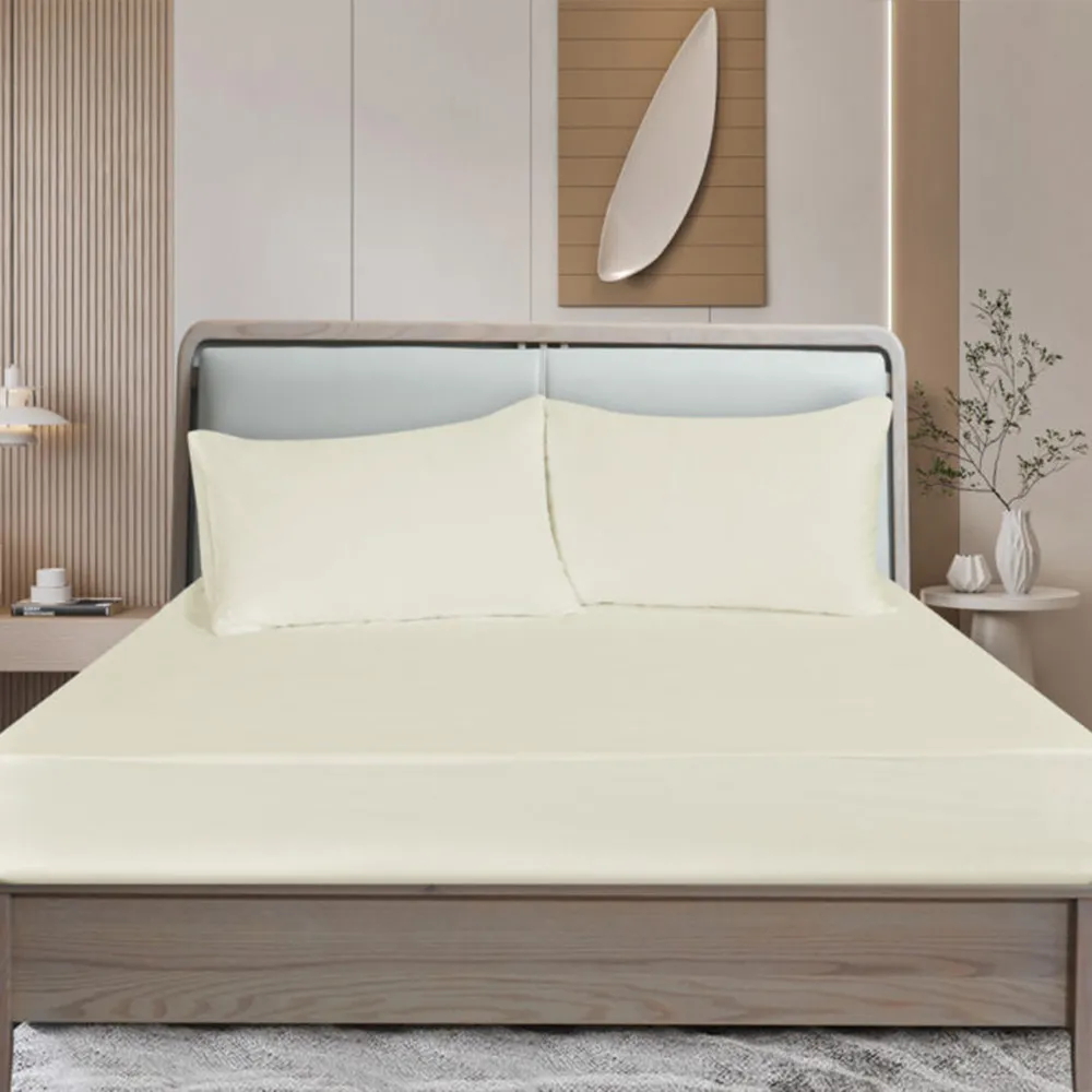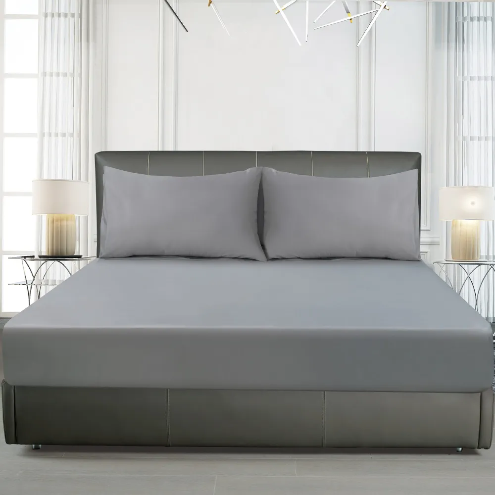 حَسِّنْ من مستوى نومك باختيارك شرشف مطاطي سادة من السّاتين القطنيّ والخيزرانيّ النّاعم المنسوج باستعمال ۳۰۰ خيط. صُنِع هذا الشرشف من الخيزران والقطن، وبتشطيب ساتيني، ليوفّر لك نومًا مريحًا وتهوية جيّدة.