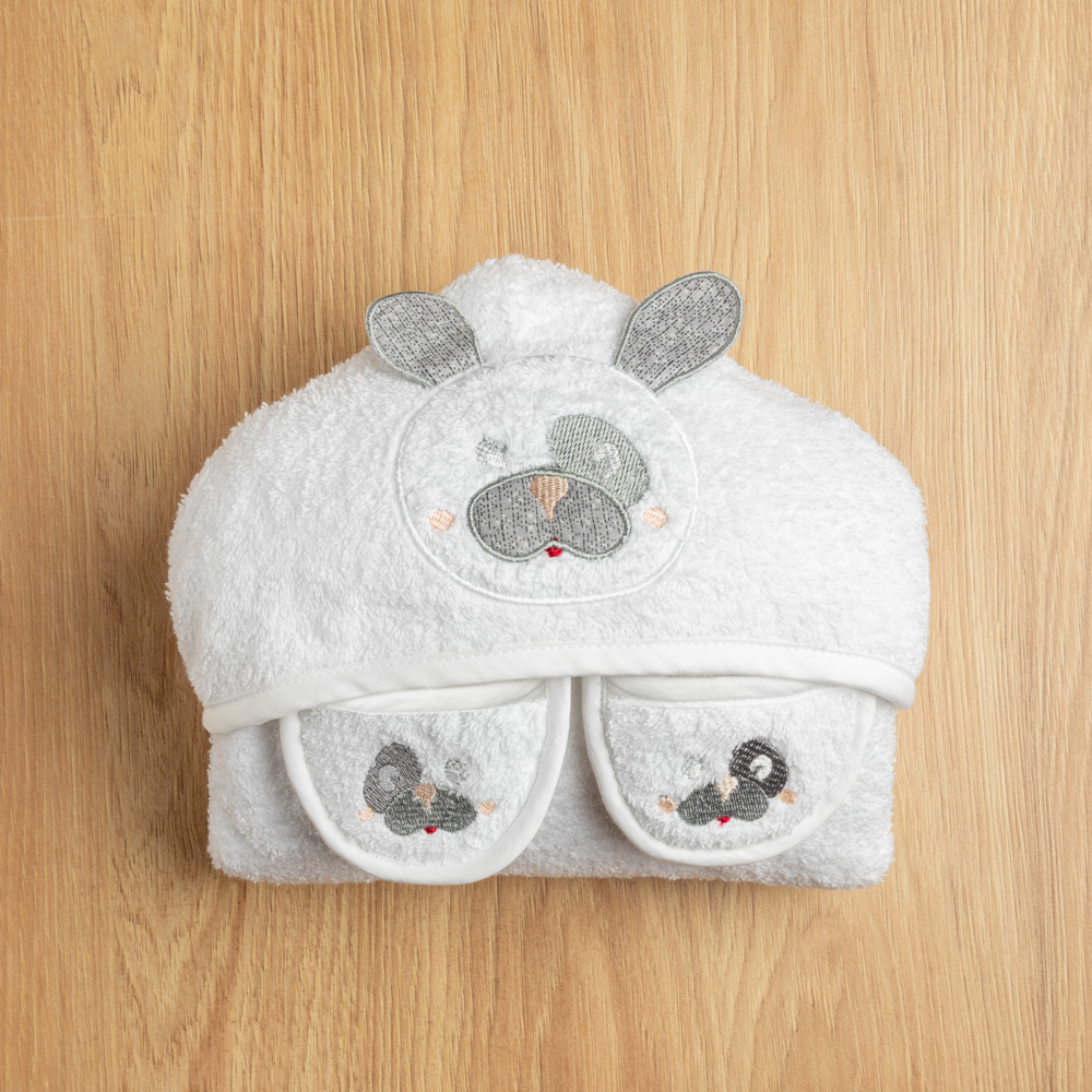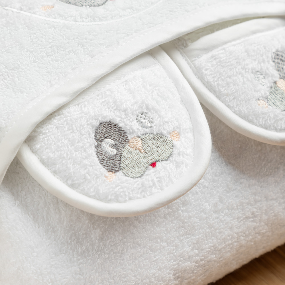 دلّلي صغيركِ بالراحة بعد الاستحمام مع طقم روب حمام آش مع شبشب. يعتني القطن الناعم ببشرته الحساسة بلطف، بينما تساعد قدرته على الامتصاص على التجفيف وابقائه مرتاح بعد كل حمام. تضيف التطريزات الناعمة لمسة من الأناقة، ليصبح وقت الاستحمام مليئًا بالدفء والاسترخاء.