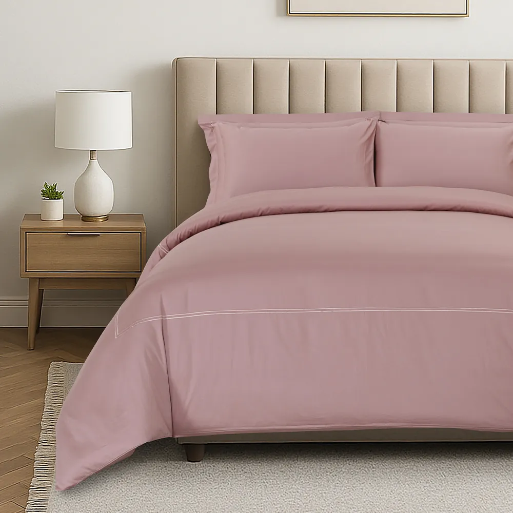 استمتع بنعومة طقم غطاء اللحاف. يقدم راحة قابلة للتنفس طوال العام. تضفي عليه خطوط البوردون المزدوجة لمسة راقية وكلاسيكية تزين غرفة نومك بأناقة.