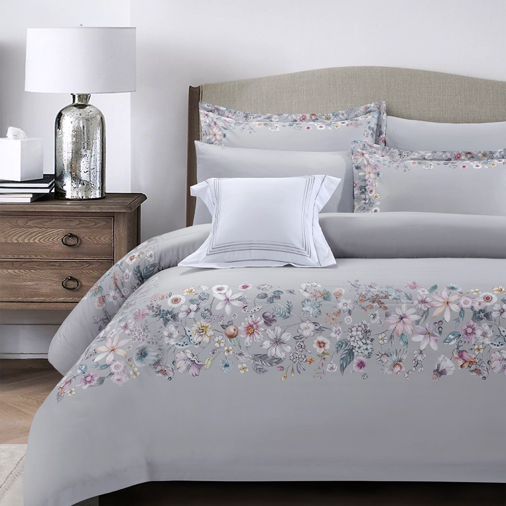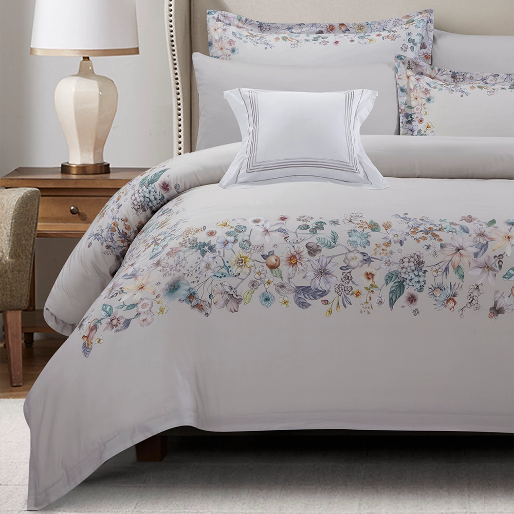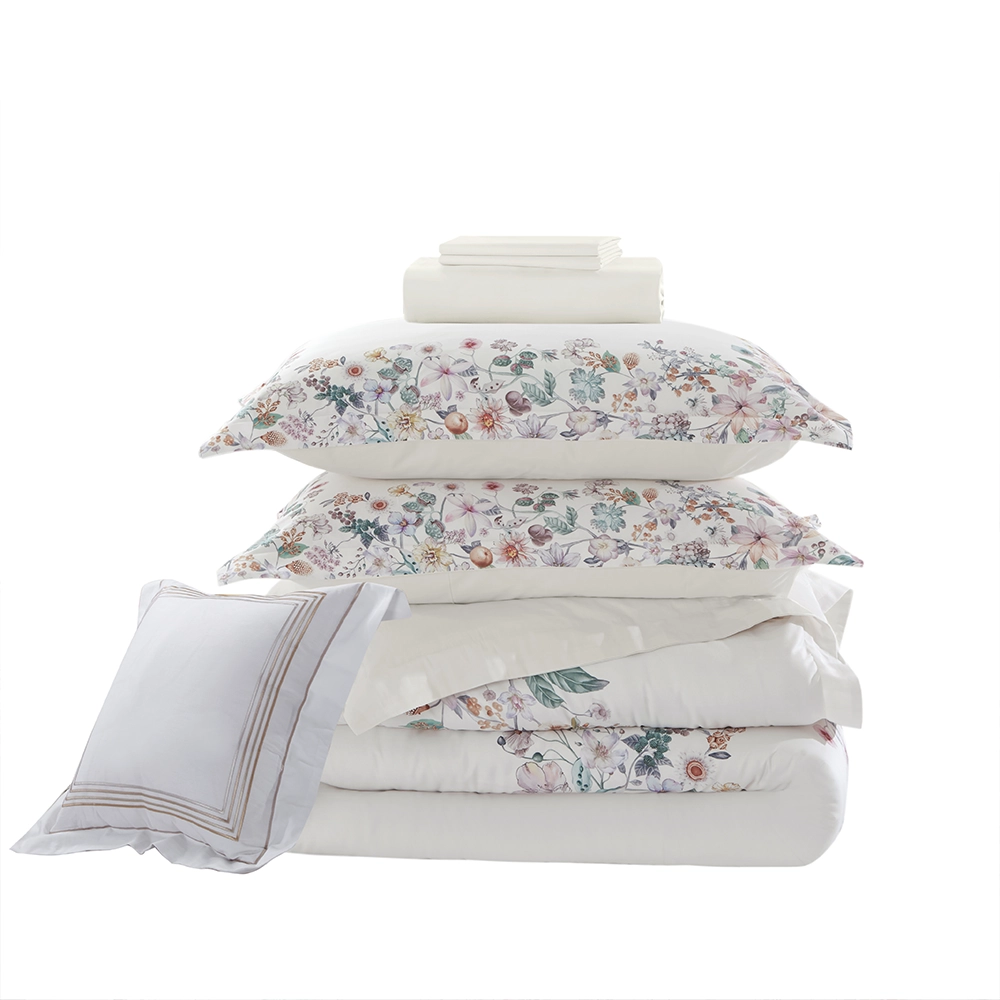 يجمع طقم اللحاف هذا بين الجاذبية والراحة بفضل تصميمه الأنيق بينما يوفر القطن القابل للتنفس إحساس بالانتعاش طوال العام.