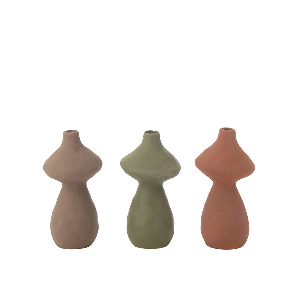 أضف لمسة طبيعية إلى منزلك مع طقم مزهريات الفطر. مصنوع من البورسلين بألوان ترابية، تتميز كل مزهرية بتصميم نحتي مستوحى من الأشكال الطبيعية، ما يجعله مثاليًا للتنسيقات الأنيقة والبسيطة.