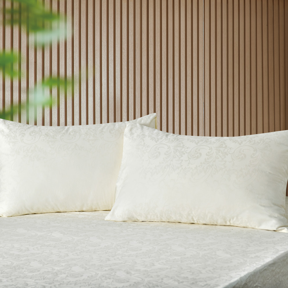 Indulge in the ultimate comfort of our Jacquard Bamboo Cotton Pillowcase Set. These easy-care pillowcases are the perfect addition to your bedding collection. Wake up feeling refreshed and enveloped in a cloud-like softness. The unique jacquard pattern adds a touch of elegance to your room.