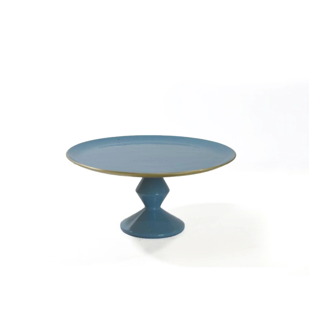 Crafted from durable aluminum and coated with a sleek enamel layer, this Blue Aluminum Cake Stand is perfect for showcasing your culinary creations. It brings an elegant and refined touch to your dessert presentation, taking your table setting to the next level.