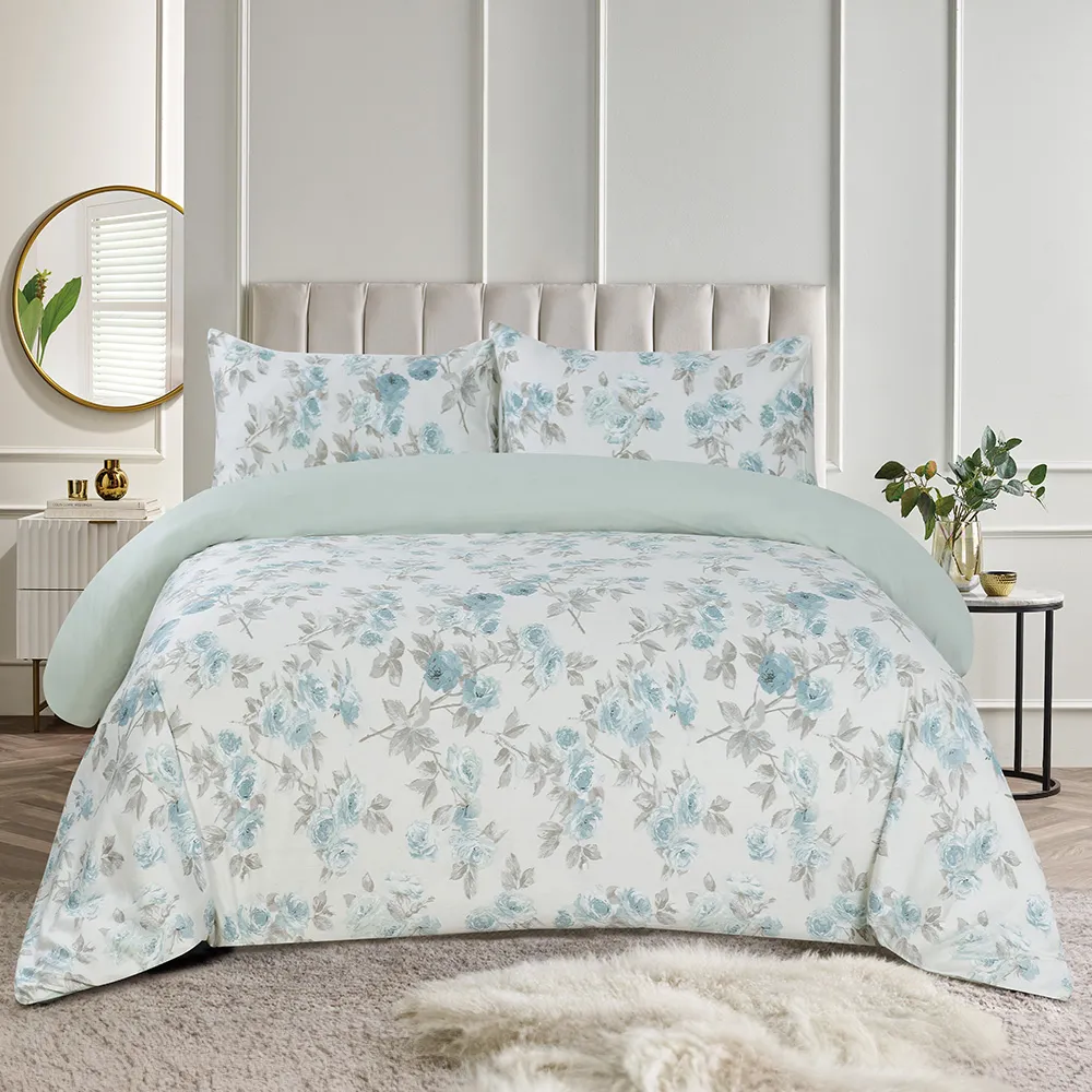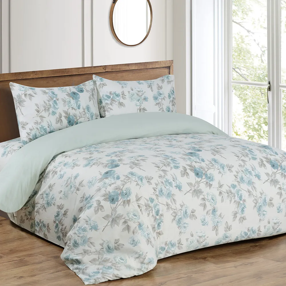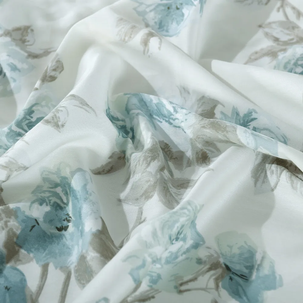 Immerse yourself in the rejuvenating comfort of our cotton sateen duvet cover. This 100% Egyptian cotton duvet cover keeps you comfortable year-round, transforming your bed into a haven of tranquility. Egyptian Cotton, renowned for its exceptional quality, is among the world’s finest. Beyond its sumptuous softness, its long-staple fibers ensure lasting durability, resisting tearing and piling. The Eglantine duvet cover features a unique floral design with elegant flowers and leaves. The fresh yet subdued colors evoke tranquility and renewal, while the charming florals add a touch of timeless sophistication.