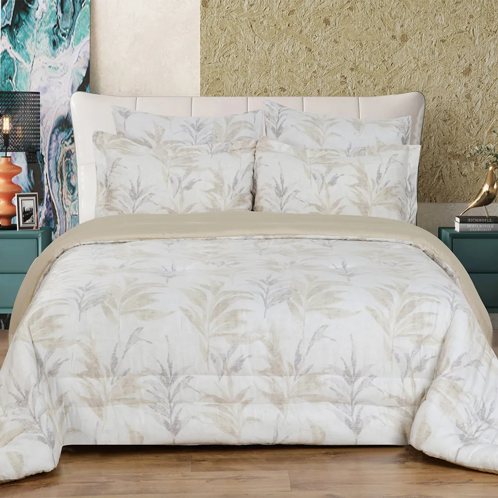 Immerse yourself in the rejuvenating comfort of our cotton sateen comforter set. This 100% Egyptian cotton comforter set keeps you comfortable year-round, transforming your bed into a haven of tranquility. Egyptian Cotton, renowned for its exceptional quality, is among the world’s finest. Beyond its sumptuous softness, its long-staple fibers ensure lasting durability, resisting tearing and piling. The Enver set features a harmonious blend of nature-inspired charm and cozy warmth. Muted botanical motifs seamlessly bring the tranquility of the outdoors inside, creating a serene haven in your bedroom.