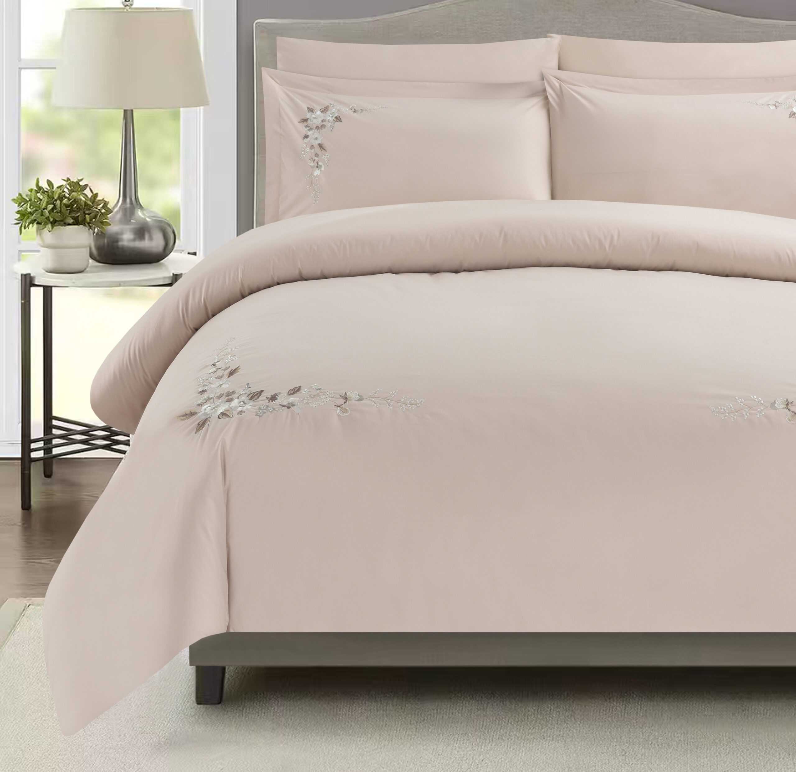 With its elegant botanical design, this duvet cover set combines charm and comfort. The delicate embroidery adds a touch of sophistication, while the breathable cotton keeps you cool all year round.