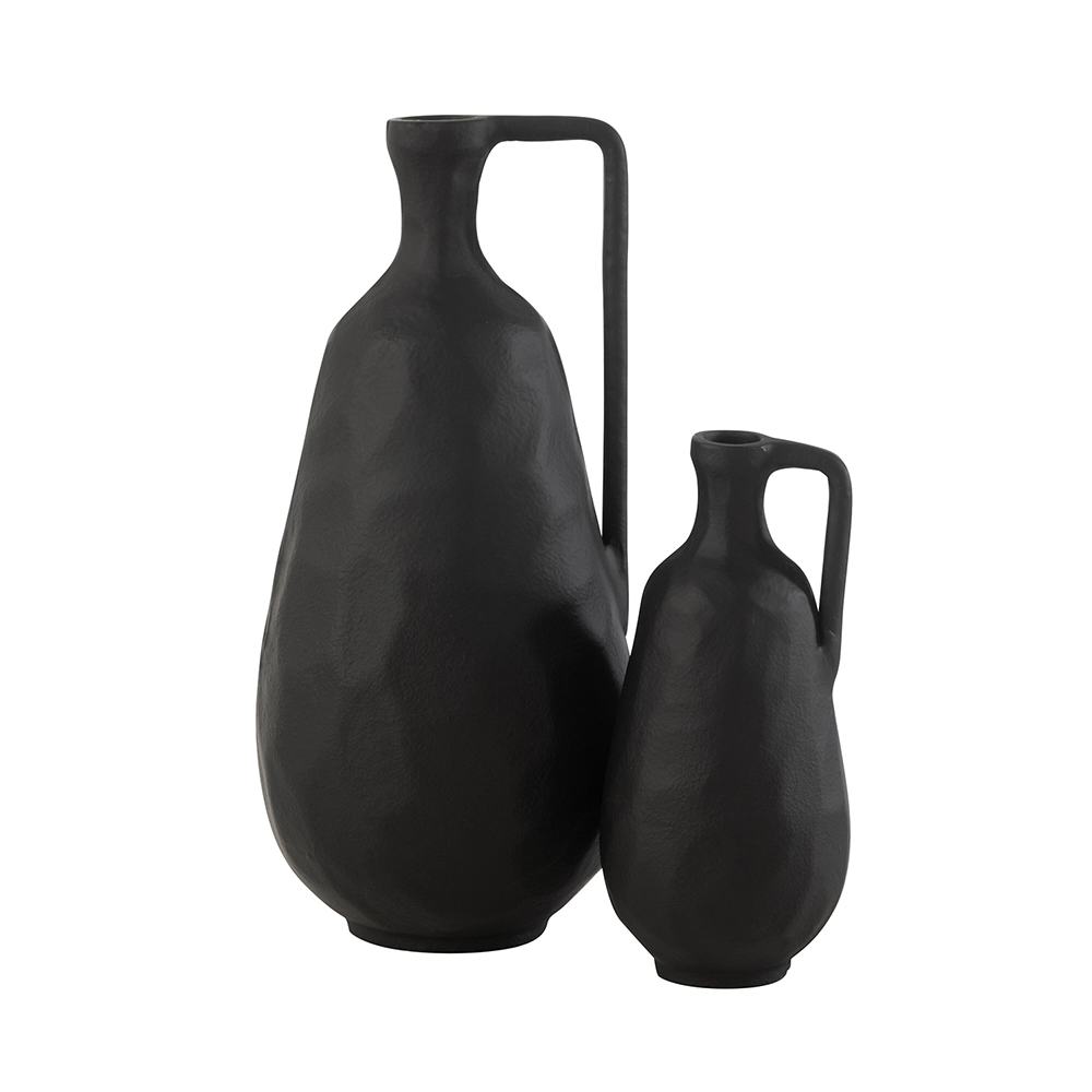 Bring a refined look to your home with the Goa Vase. Crafted from aluminum with a matte black finish, it features a unique shape and handle that stand out on any surface.