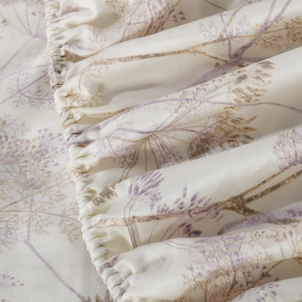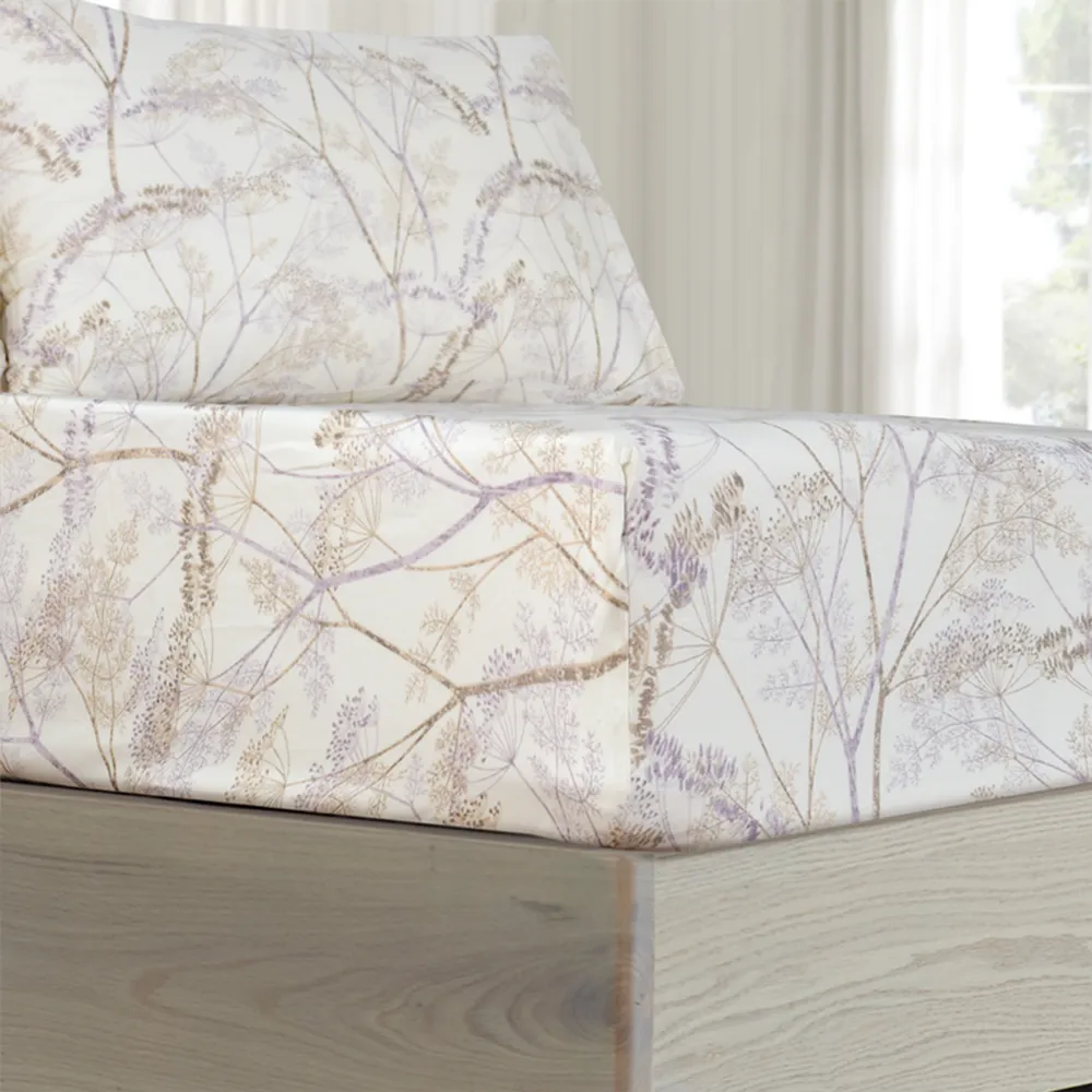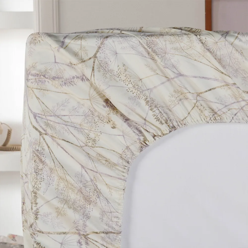 Immerse yourself in the rejuvenating comfort of our cotton sateen fitted sheet. This 100% Egyptian cotton sheet keeps you comfortable year-round, transforming your bed into a haven of tranquility. Egyptian Cotton, renowned for its exceptional quality, is among the world’s finest. Beyond its sumptuous softness, its long-staple fibers ensure lasting durability, resisting tearing and piling. The Pampas sheet features a gracefully minimalist, nature-inspired design pattern that emanates a subtle ambiance. It creates a serene mood, inviting you to immerse yourself in a haven of comfort.
