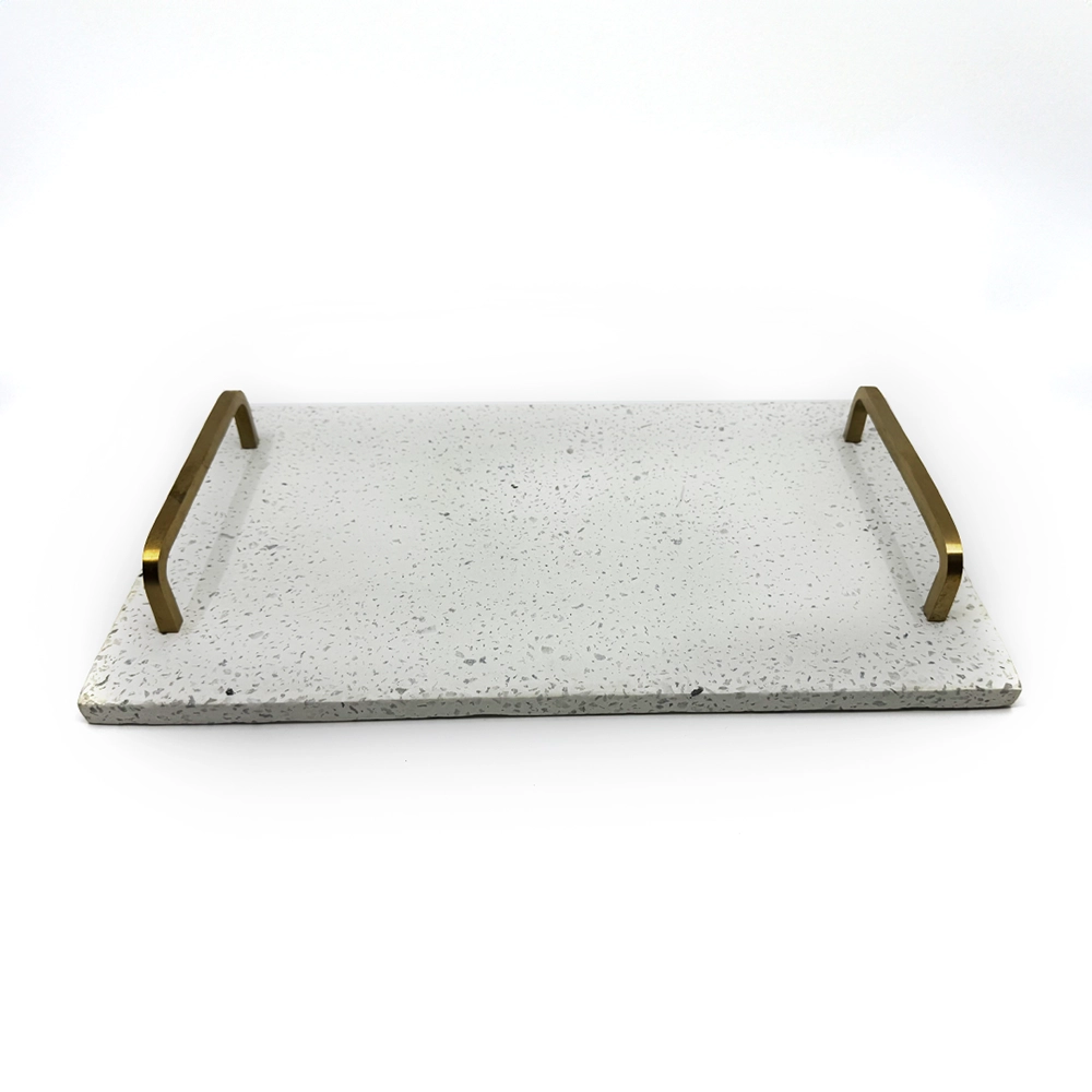 Add sophistication to your gatherings with this sleek white marble rectangular tray. Featuring elegant gold handles, its modern design effortlessly blends style and function, making it ideal for serving or display.