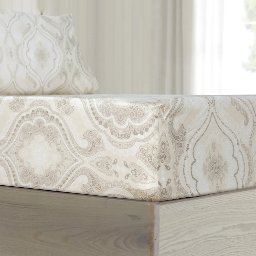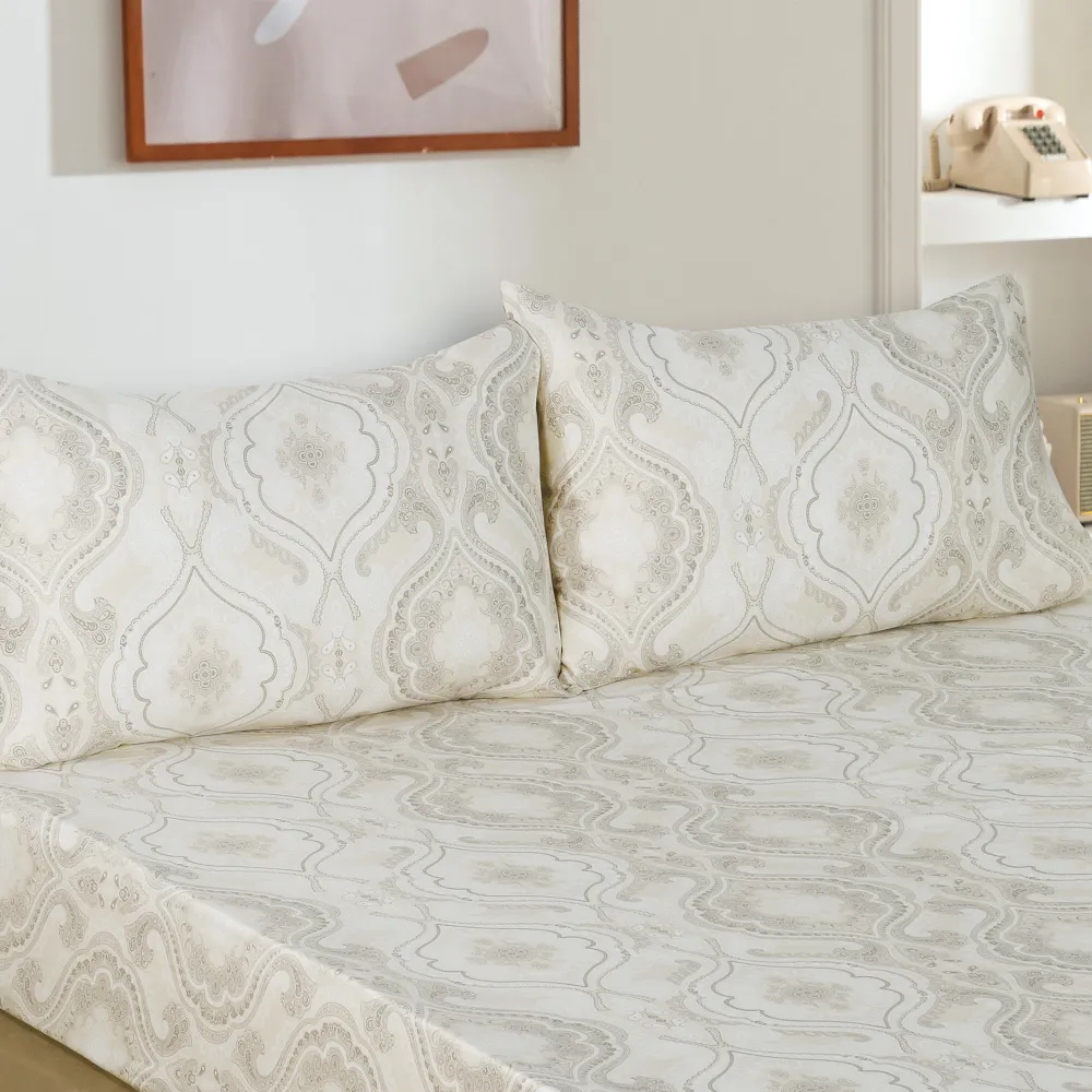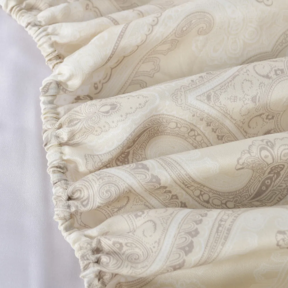 Immerse yourself in the rejuvenating comfort of our cotton sateen fitted sheet. This 100% Egyptian cotton sheet keeps you comfortable year-round, transforming your bed into a haven of tranquility. Egyptian Cotton, renowned for its exceptional quality, is among the world’s finest. Beyond its sumptuous softness, its long-staple fibers ensure lasting durability, resisting tearing and piling. The Velvy sheet features an abstract design that seamlessly blends colors. This creates a timeless and sophisticated look, infusing your sleep haven with a chic and elegant vibe.